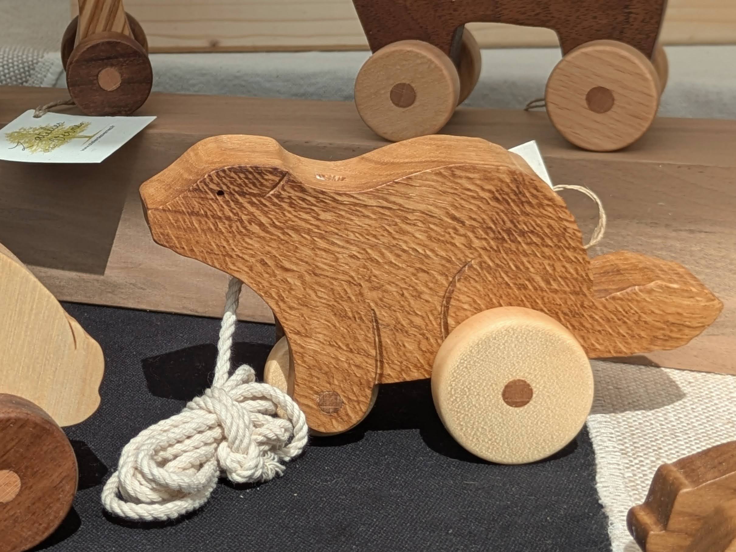 Petite marmotte mignonne, avec un mouvement de bascule de droite gauche qui la fait se trémousser quand on la tire!